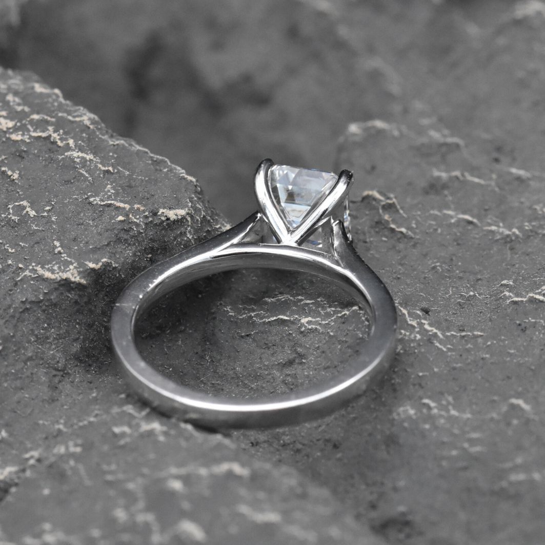 Asscher cut diamond solitaire set in 18k white gold