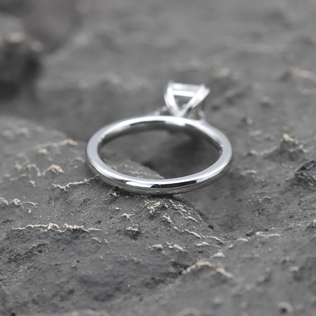 Emerald cut diamond ring set in 18k white gold. 1.56ct K Colour VS2 Clarity on a HRD Certificate.