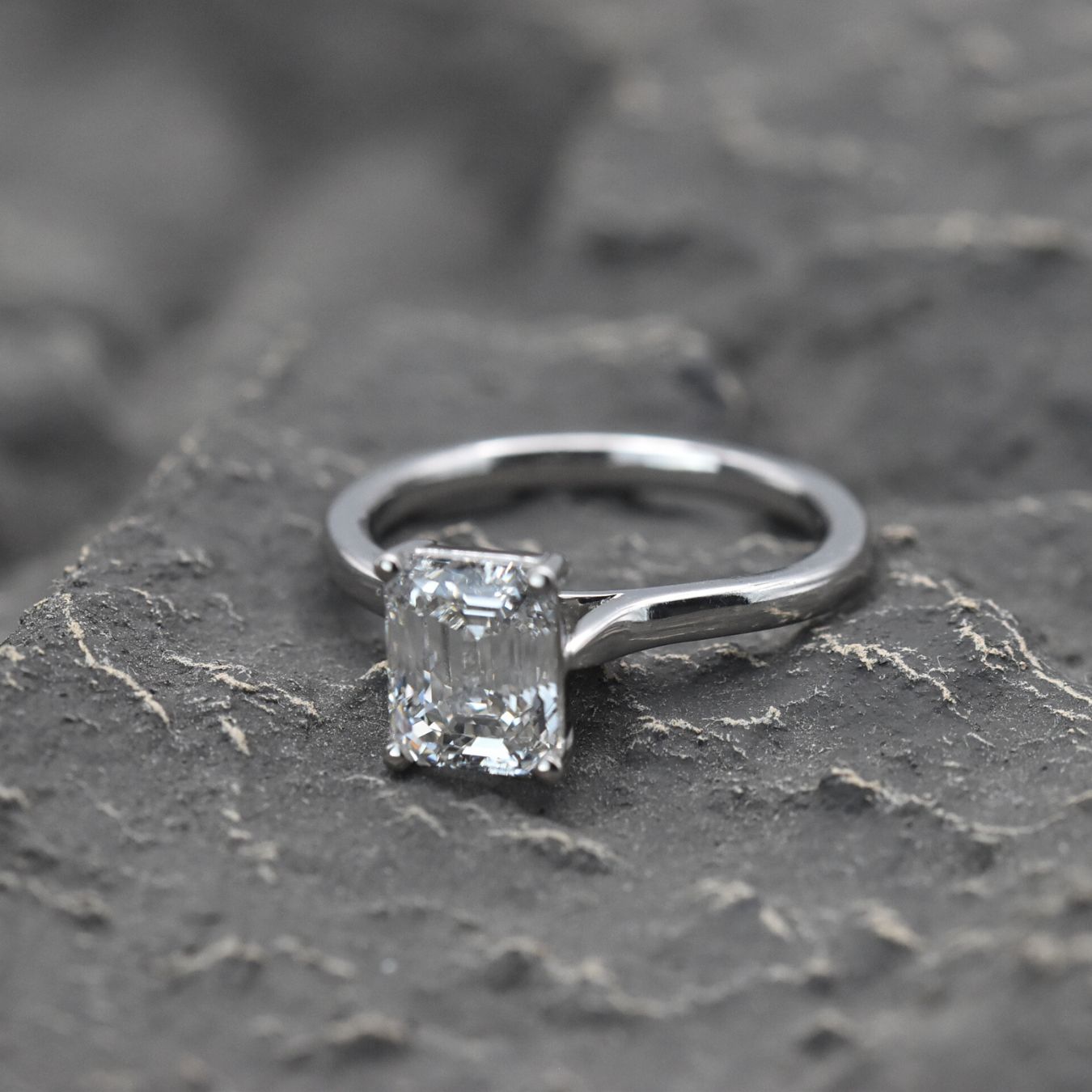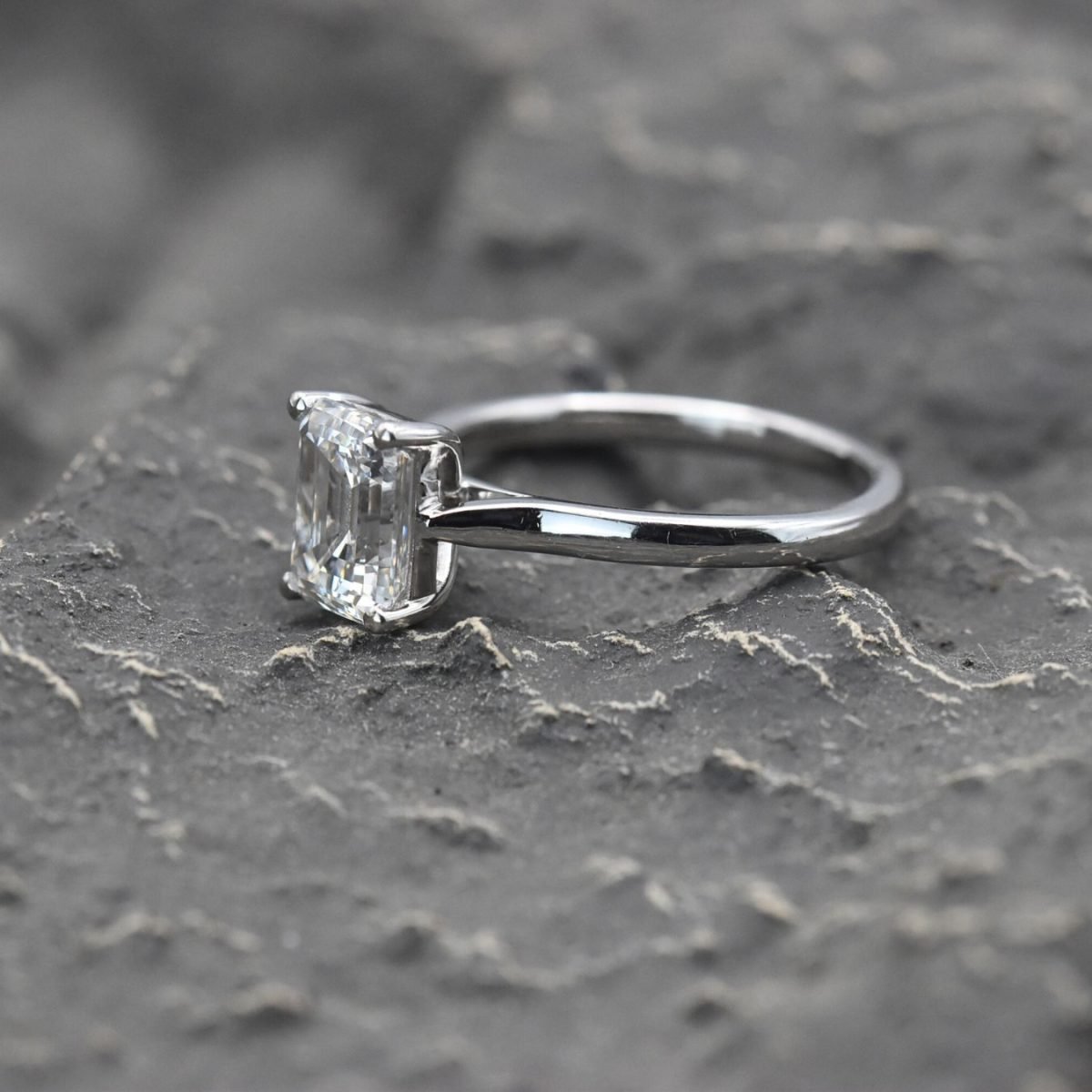 Emerald cut diamond ring set in 18k white gold. 2.00ct G Colour VVS1 Clarity on a HRD Certificate.