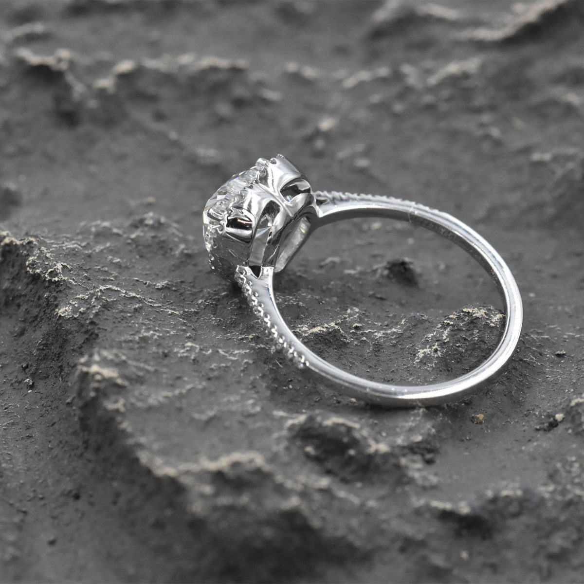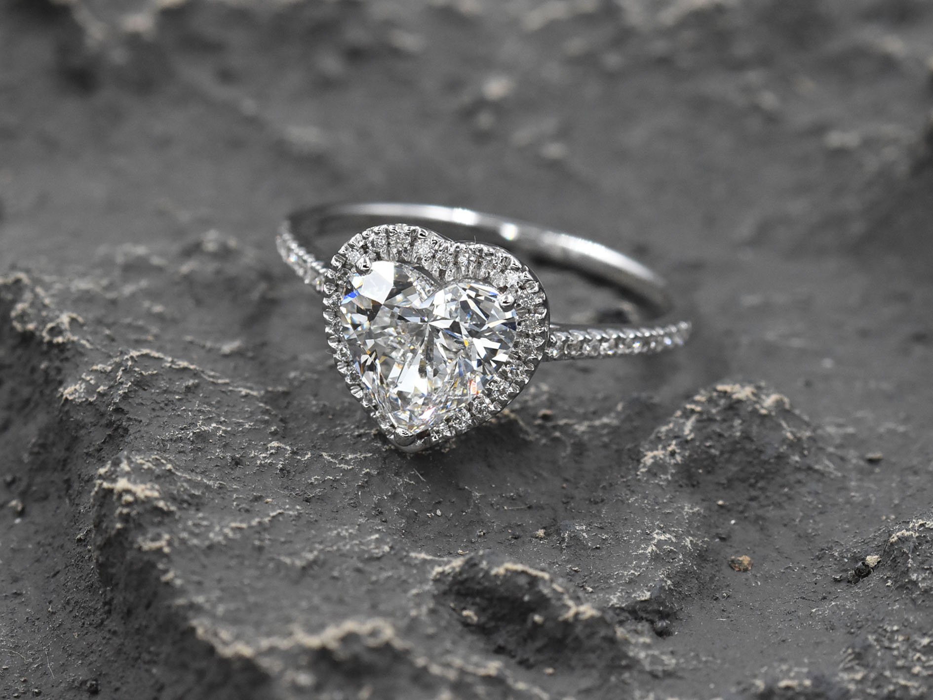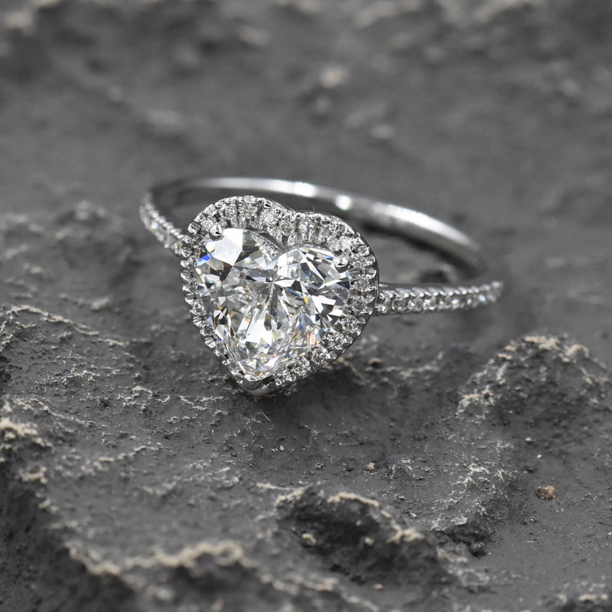 Heart cut diamond solitaire set in 18k white gold, 1.61ct Heart, F Colour VS2 Clarity on an IGI Certificate –  Dimensions 7.52 x 7.89 x 4.56
