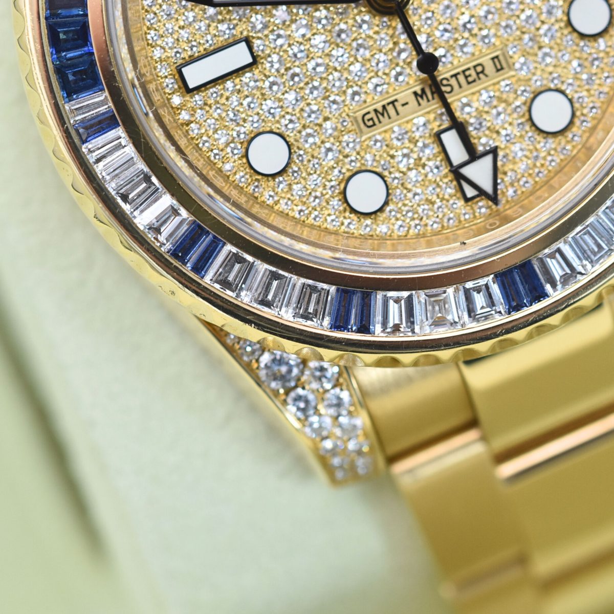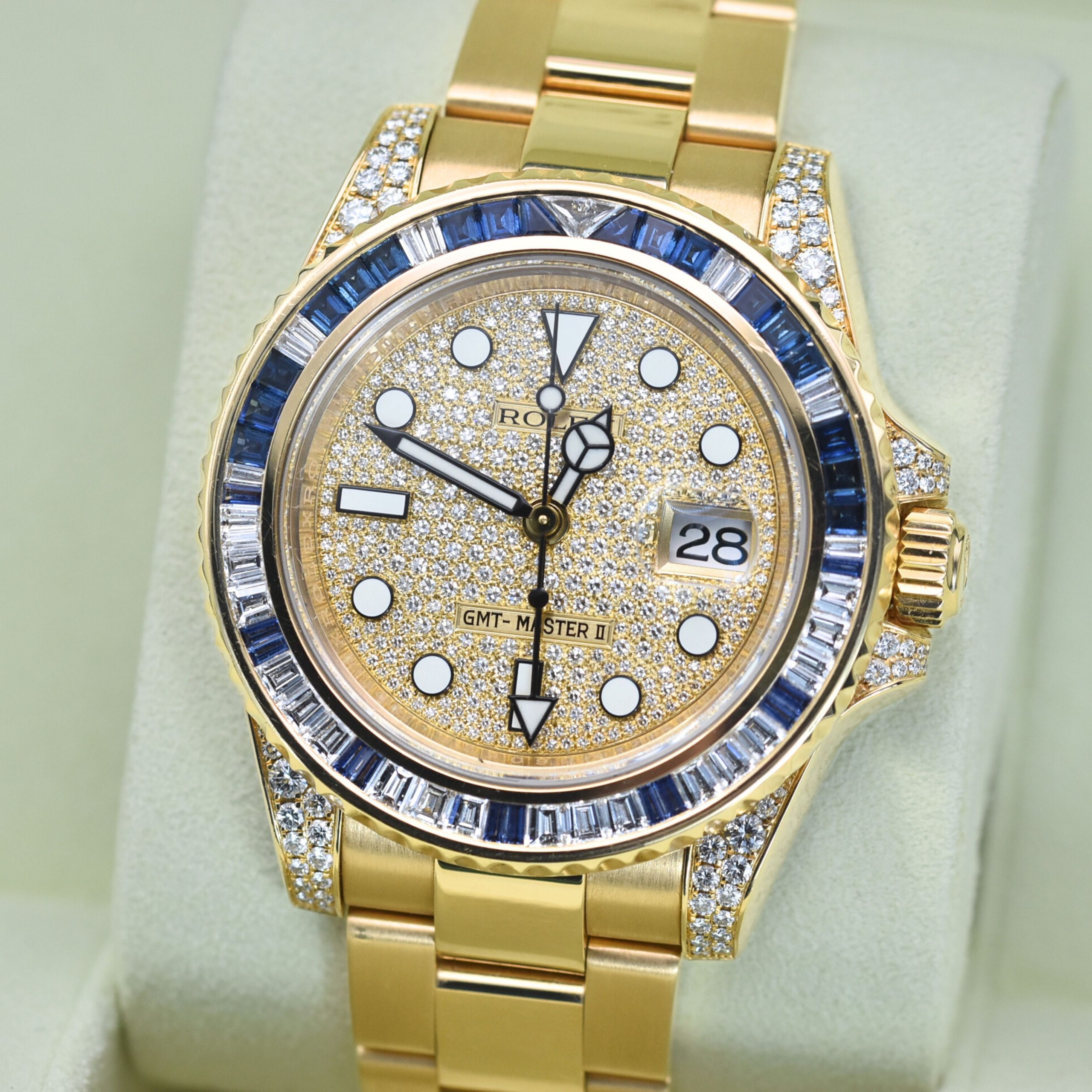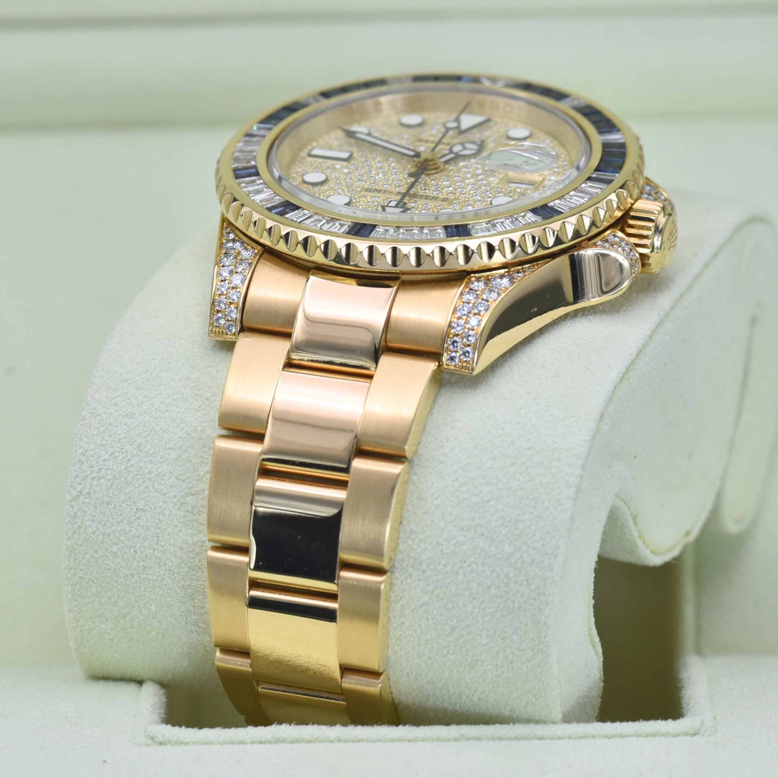 Powered by Rolex’s renowned automatic movement, this GMT-Master II delivers exceptional performance and dual-time-zone capability—perfect for collectors, world travelers, or anyone seeking a piece that blends elegance with purpose. The solid gold Oyster bracelet provides a luxurious fit, while the overall craftsmanship embodies the heritage and expertise that has made Rolex a global symbol of excellence.