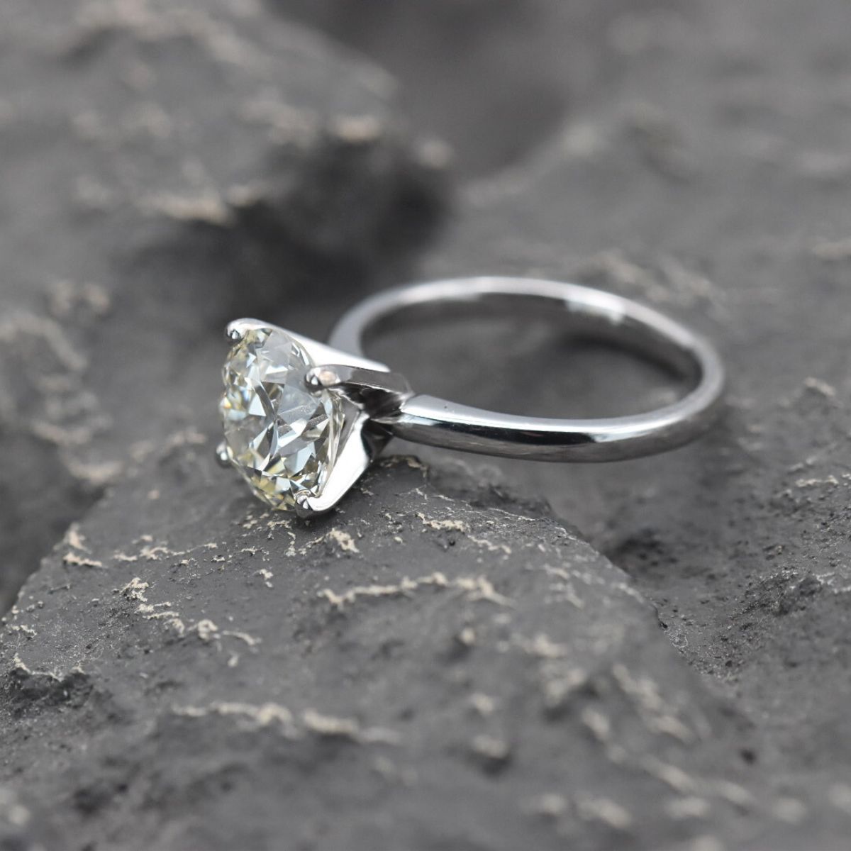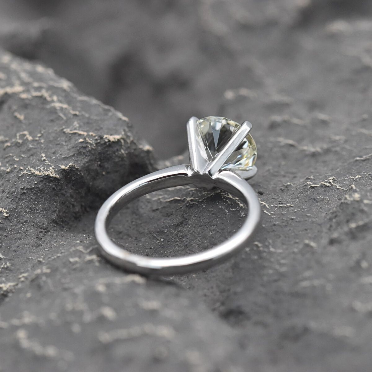Round cut solitaire set in 18k white gold