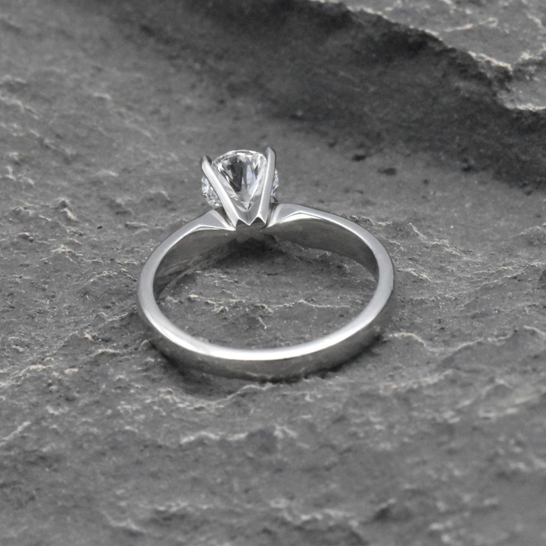Round cut diamond solitaire set in 18k white gold